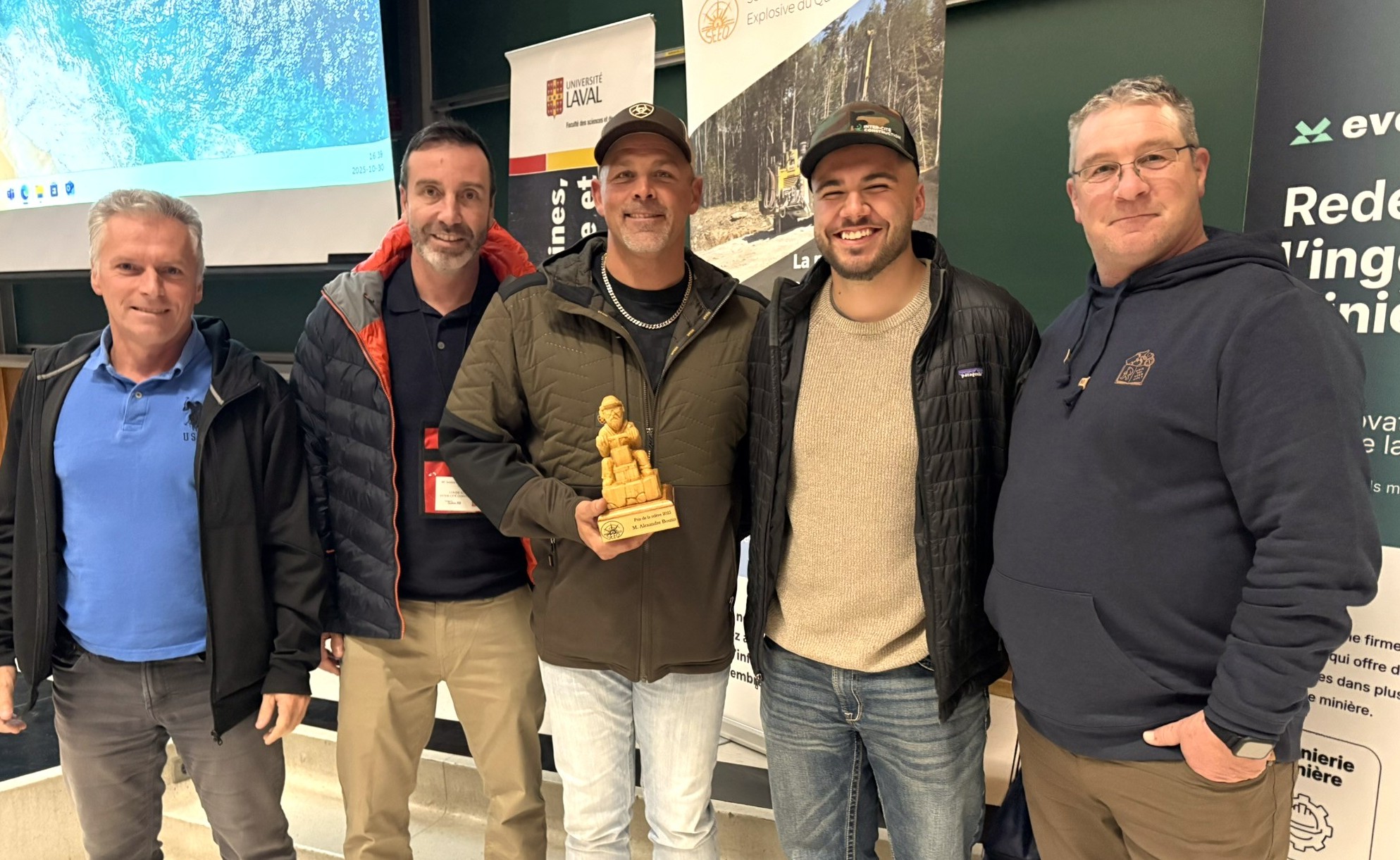 Le lauréat du prix de la relève 2023 avec ses collègues de la compagnie Minerai de fer Québec